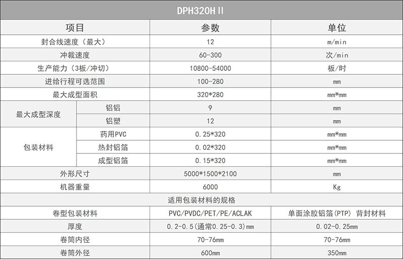 DPH320HⅡ全伺服高速輥板泡罩包裝機(jī) 參數(shù)表